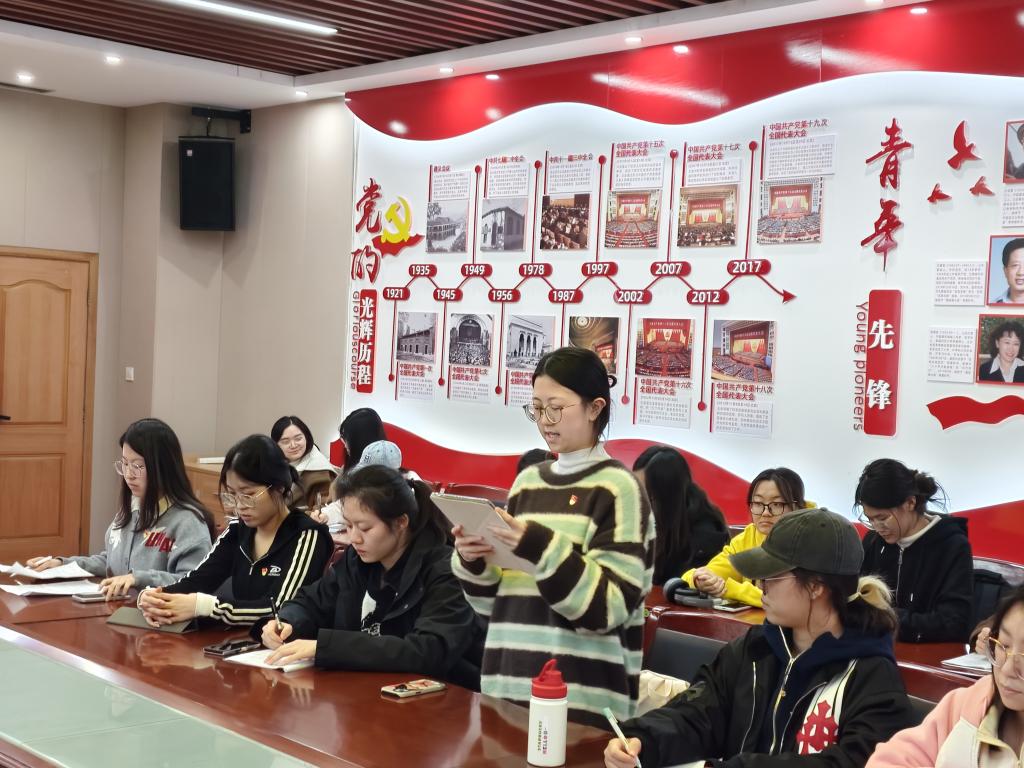 李金洋与寇钰婕共同领学党的二十届四中全会精神,寇钰婕聚焦全会对党的建设、国家治理等重大战略部署,选取与高等教育和青年成长密切相关的重点内容进行了系统梳理和解读。李金洋结合“两山理论”提出20周年,重点领学全会公报中关于绿色环保、污染防治、建设美丽中国等内容,鼓励学生党员增强专业信心,提升科研素养,将政治理论学习与专业知识学习充分结合,做政治素养与专业领域的双重模范。