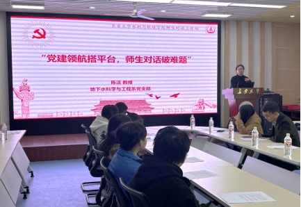 地下水科学与工程系教师党支部联合水利类、环境类硕士研究生党支部举办“党建领航搭平台,师生对话破难题”主题师生交流活动,本次活动由学生党员康雅宁主持。