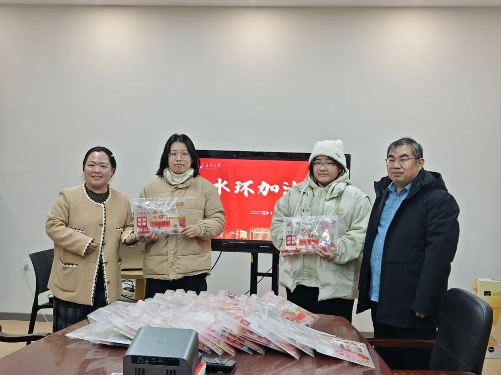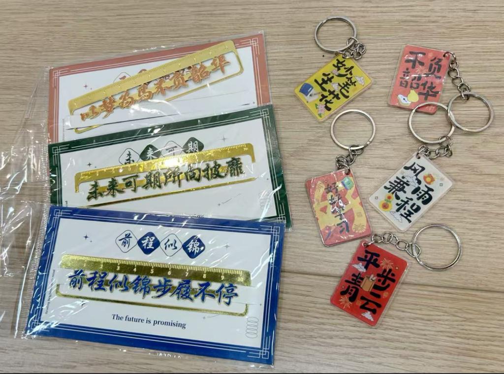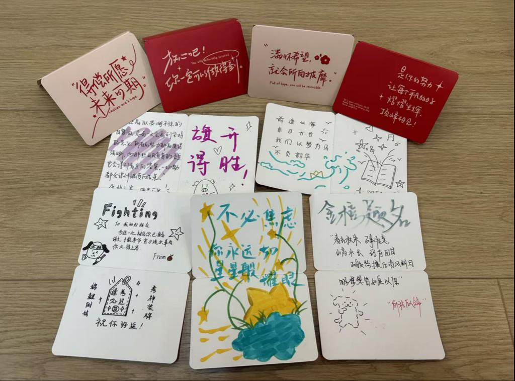 领导班子、系室主任、教工党支部书记、辅导员及学弟学妹们亲手书写的祝福贺卡;“天道酬勤”励志书签,以隽永文字时刻勉励追梦人;甜蜜糖果,将“金榜题名”的美好祝福融进舌尖;舒缓眼贴,为疲惫的眼眸送上片刻放松;还有刻着“前程似锦”字样的定制钥匙扣,寓意开启通往理想学府的大门。从精神慰藉到实用助力,这份礼包全方位为考研学子保驾护航。