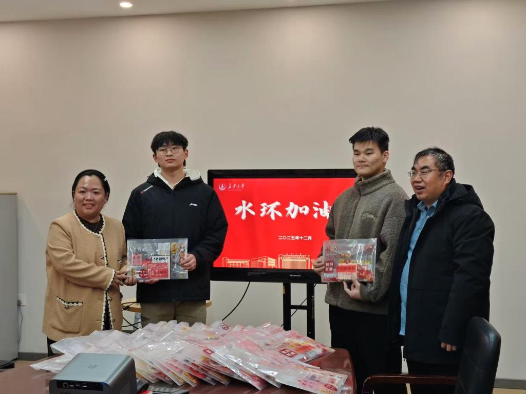 领导、专业教师代表及辅导员亲切慰问紧张备考的学子,并送上精心准备的“考研加油包”。