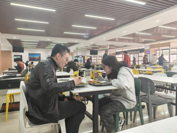 各年级辅导员分别邀请了学生代表在食堂共进午餐,在轻松愉快的氛围中进行了更深入的交流。餐桌上,辅导员们详细了解了同学们上学期的考试情况、本学期的学习计划、学业困难情况以及对未来发展的初步思考。对于即将面临毕业选择的高年级学生,交流则侧重就业进展、实习情况,特别询问了大四考研初试成绩自我评估、心理状态以及后续复试或调剂的准备情况,并结合往届案例和当前形势,为同学们提供了针对性的建议、信息渠道和心理疏导。